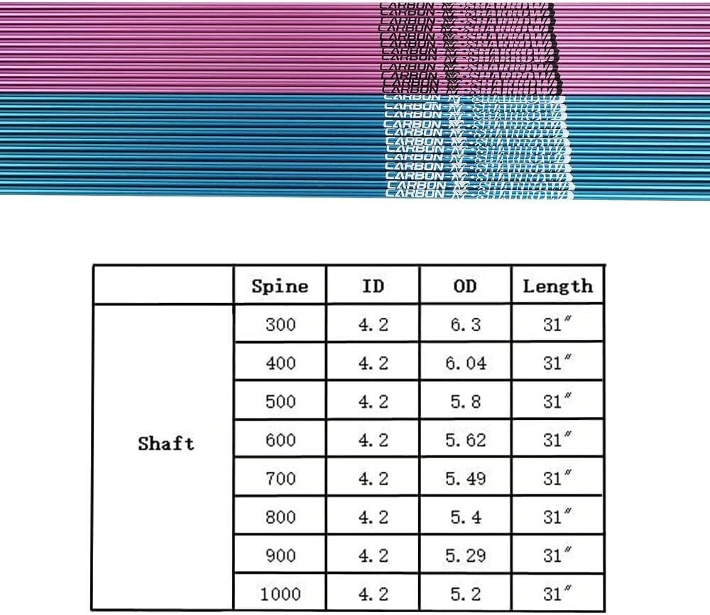 Arrow spine ensures the arrow flexes correctly when shot. Match your draw weight and arrow length to the appropriate spine: