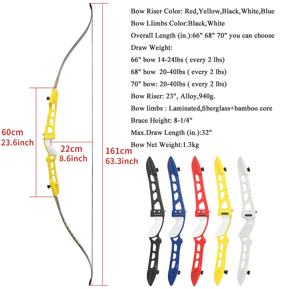 Competition Target Recurve Bow 66" 68" 70" 14-40 lbs for Beginners