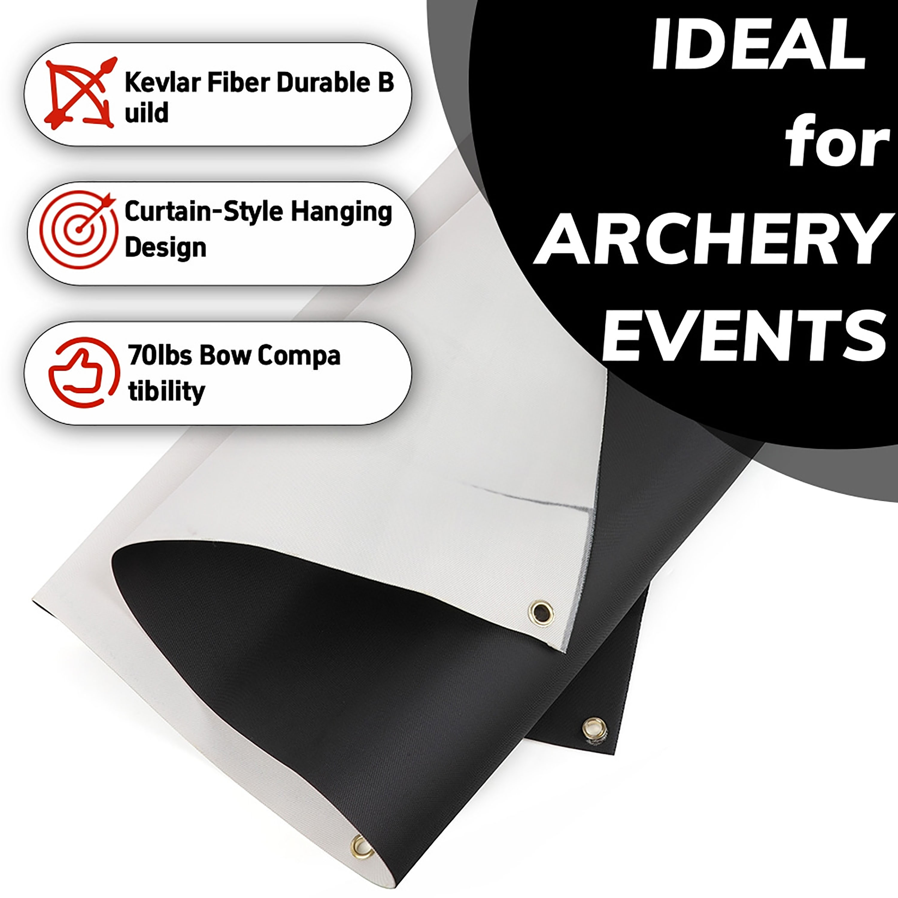 • Flexible Curtain Design: Designed to hang loosely like a curtain, this backstop maintains optimal stopping power by avoiding tight pulls that could compromise its arrow-blocking effectiveness.
