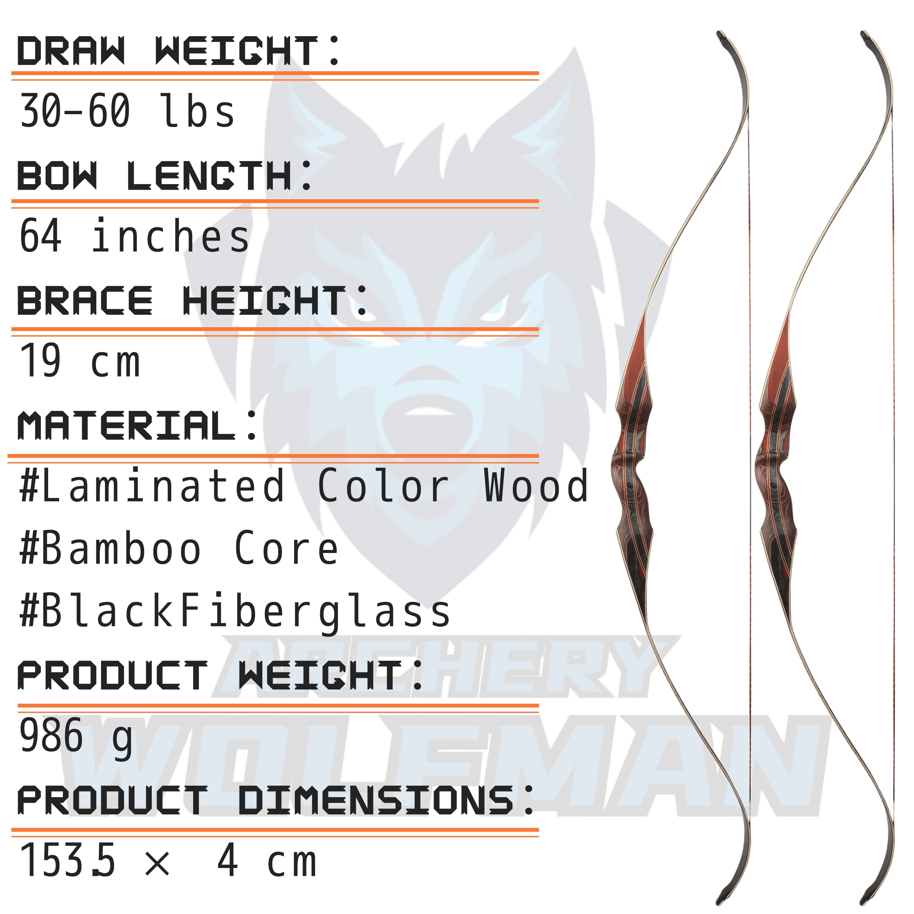 • Durable and Long-Lasting: Made with bamboo laminated limbs and fiberglass, this bow is built to withstand outdoor conditions and provide reliable performance over time.
