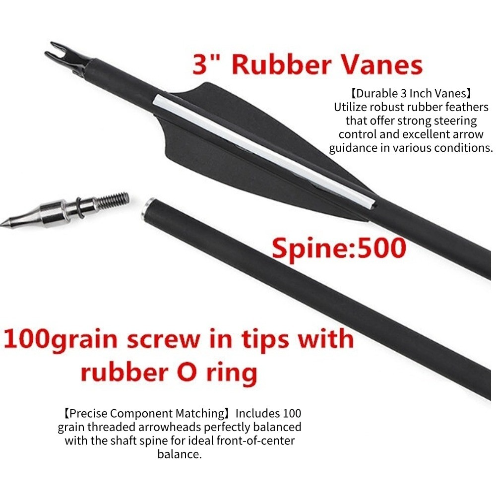 ✔ Precise Component Matching – 100 grain threaded arrowheads balanced with 500 spine shaft