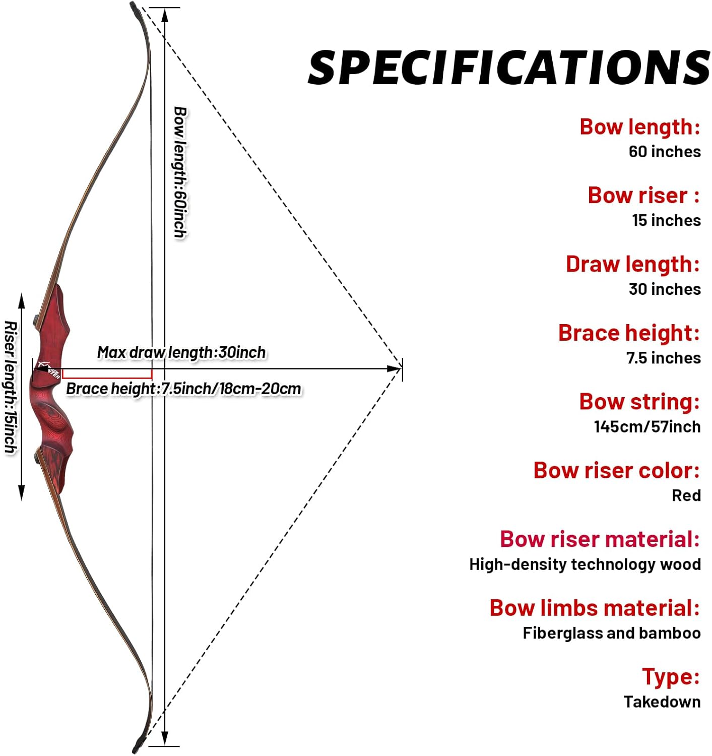 Brace Height: 7.5 to 8inch