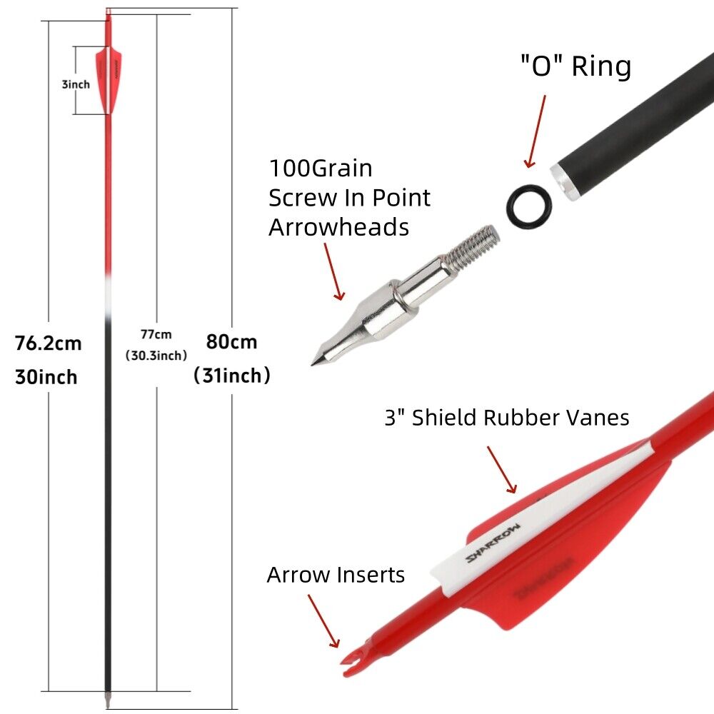 Carbon Fletched Arrows 30" SP500 Vanes Archery Hunting