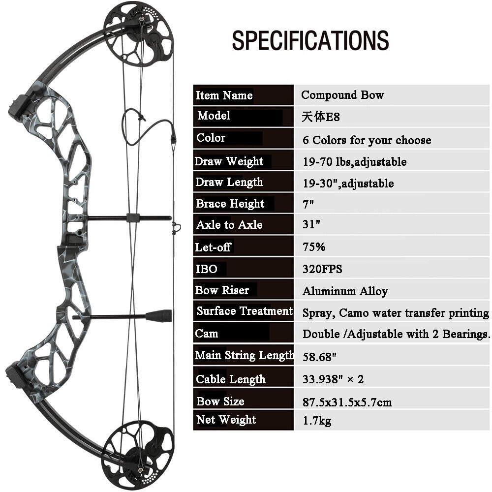 E8 Compound Bow and Arrow Full Set Adult Hunting 19-70lbs