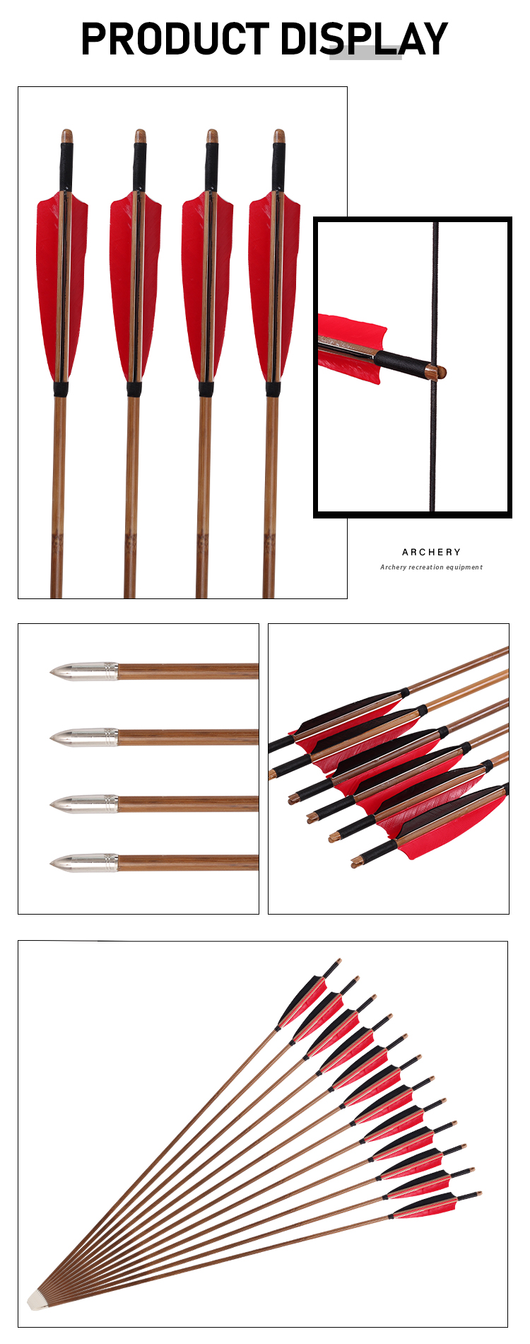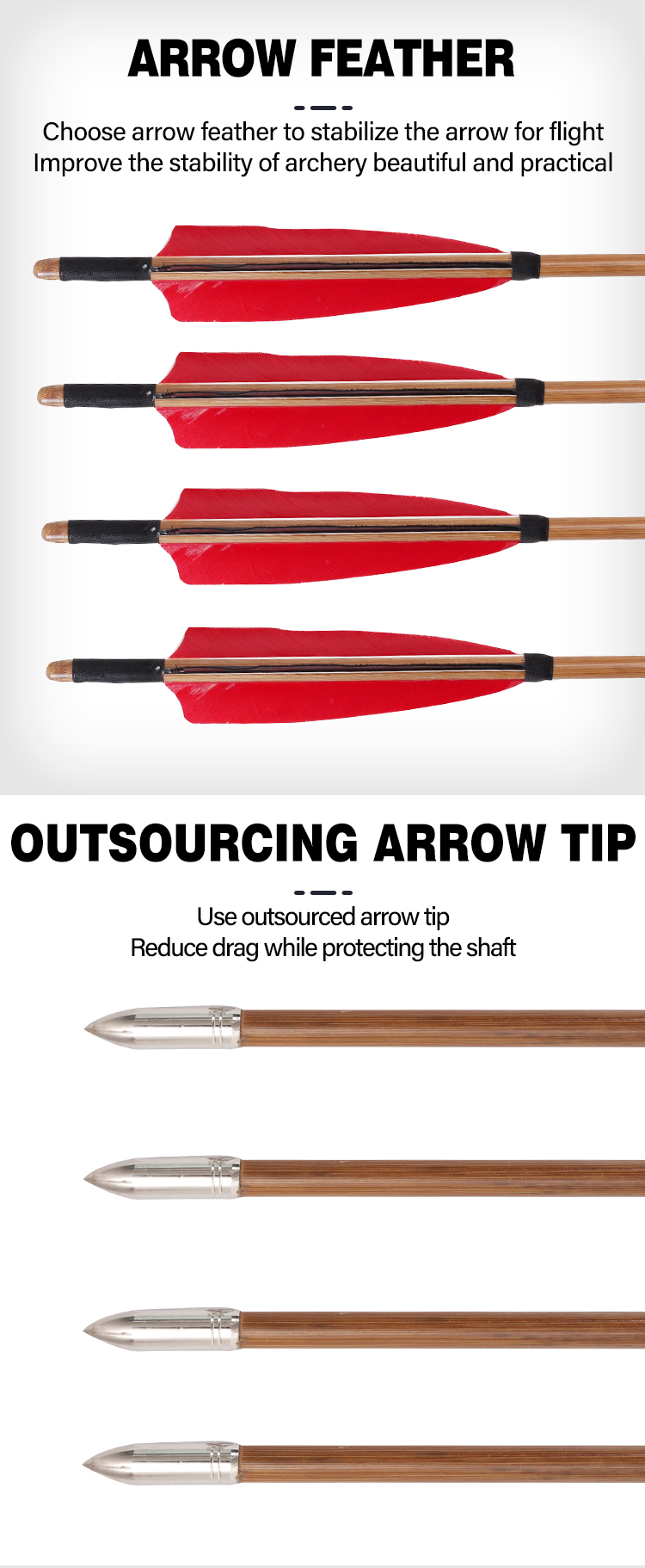 Handmade Bamboo Arrows for Recurve Bow Longbow Traditional Archery