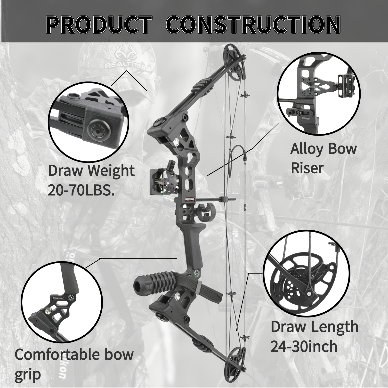 ✔ Wide Adjustability Range – 20-70 lb draw weight & 24"-30" draw length for all skill levels