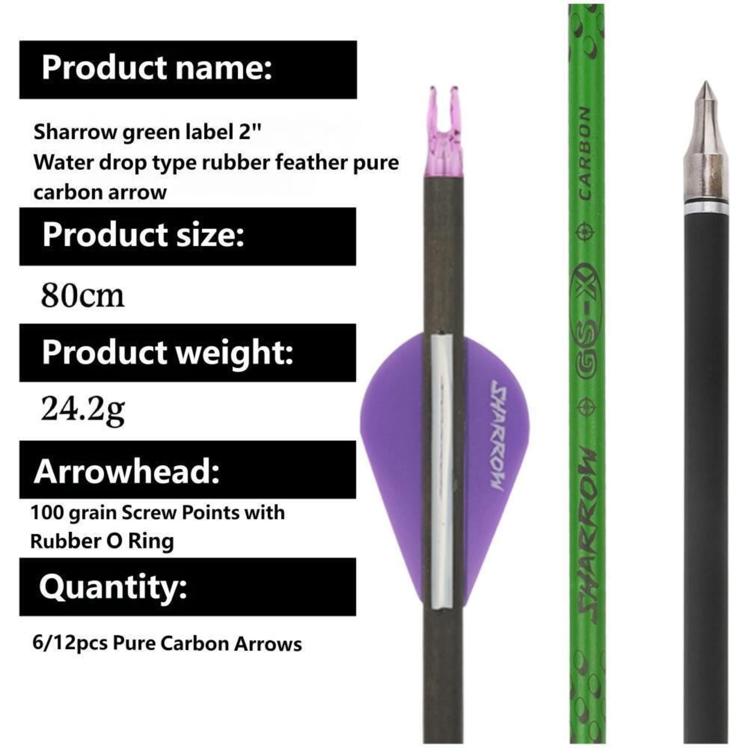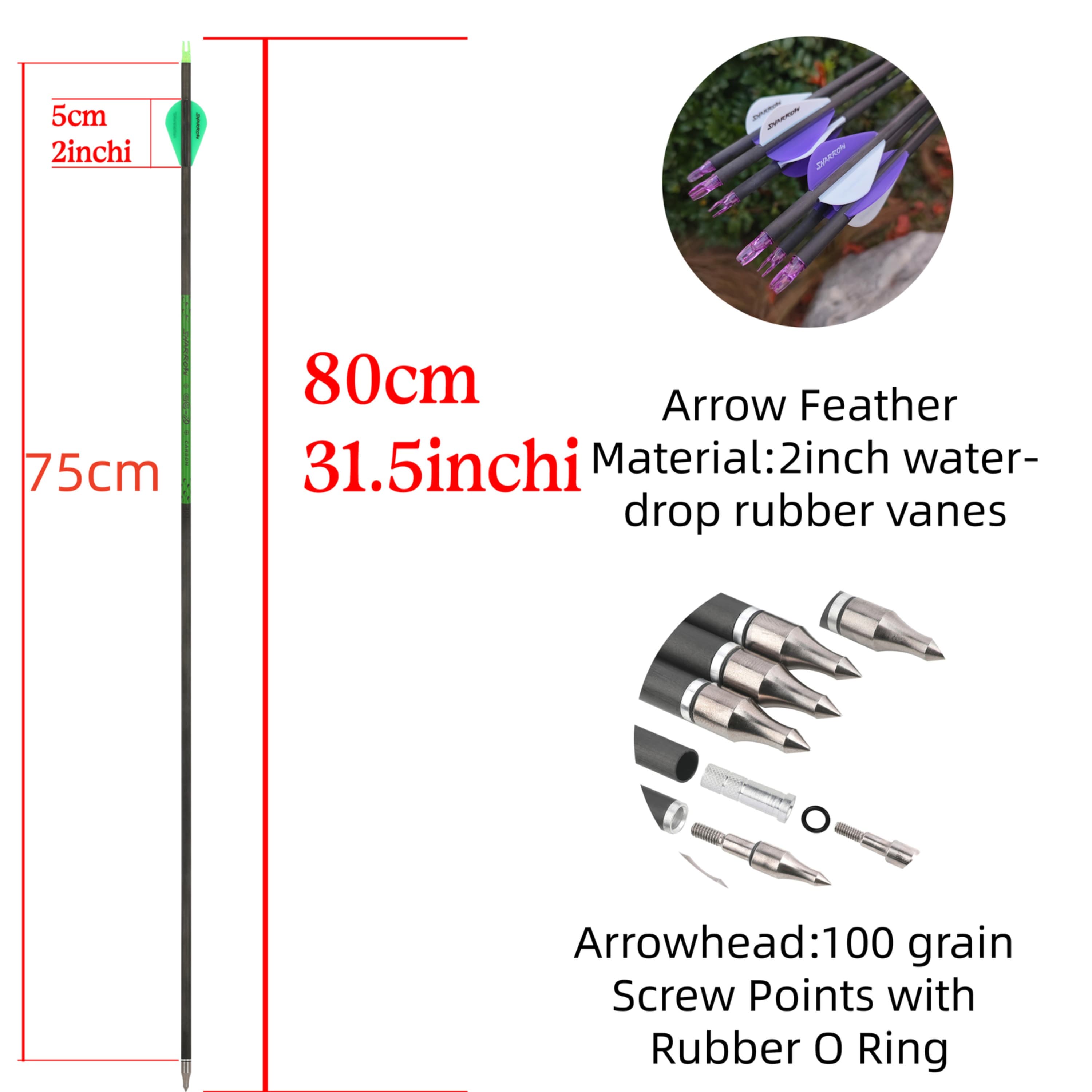 Pure Carbon Archery Arrows 30" SP300-800 for Compound/Recurve