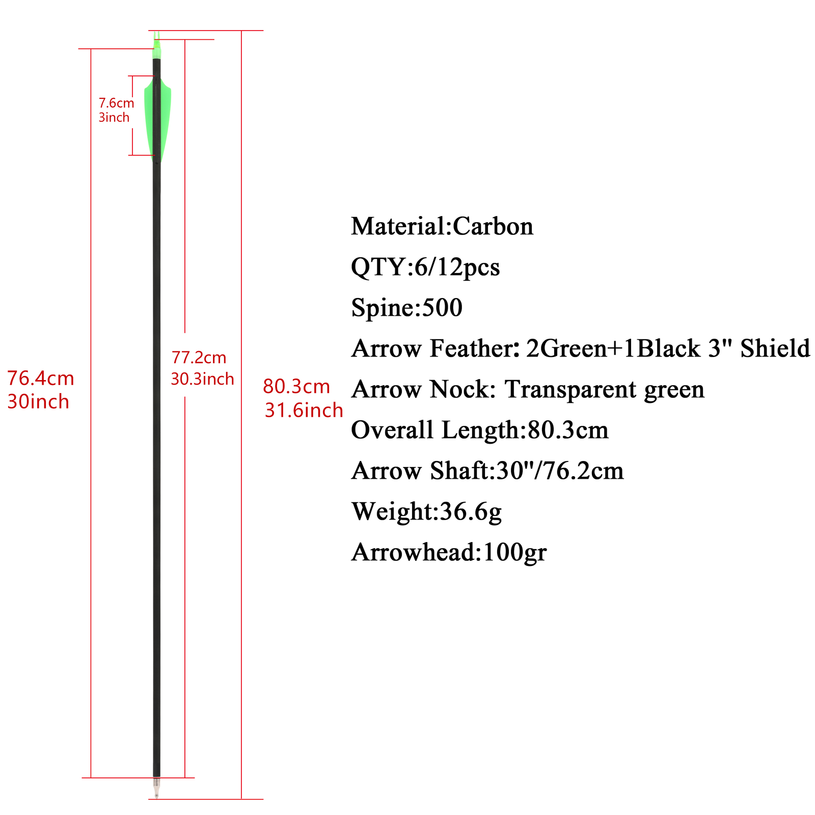 30" 500 Spine Carbon Arrows Target & Hunting