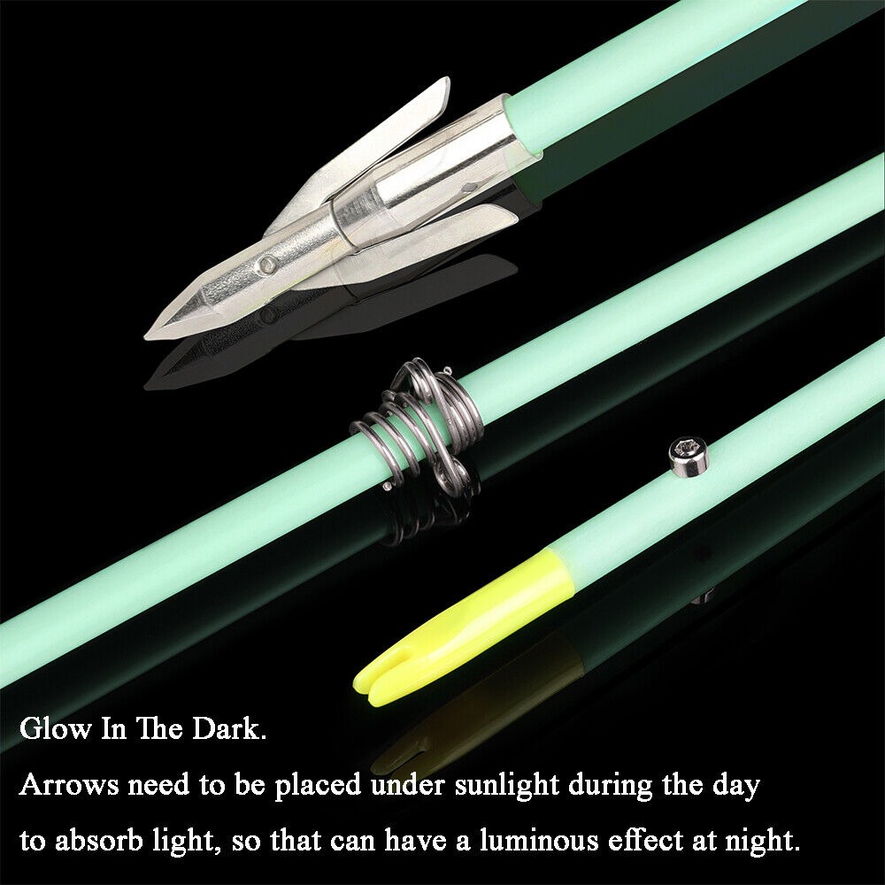 Night Bowfishing Arrows Glow-in-Dark Fiberglass with Magnetic Barb