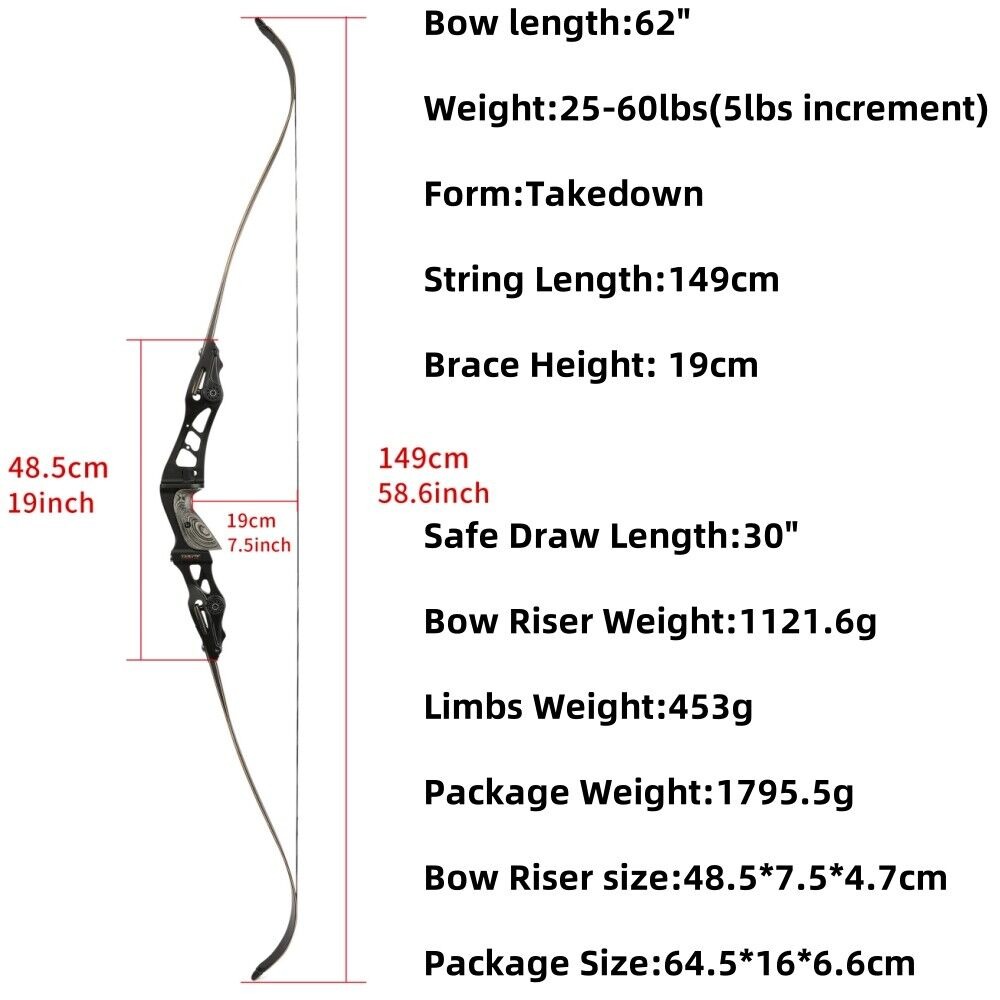 TBOW ILF Recurve Bow 62 inch 25-60lbs Hunting Target Bow F263