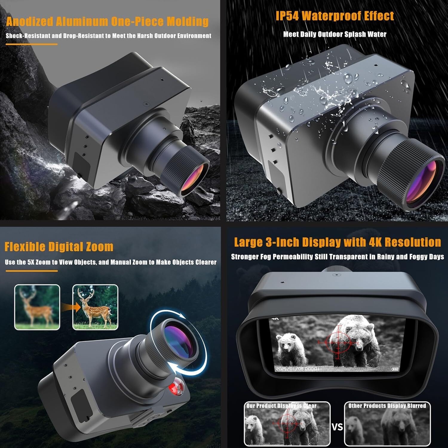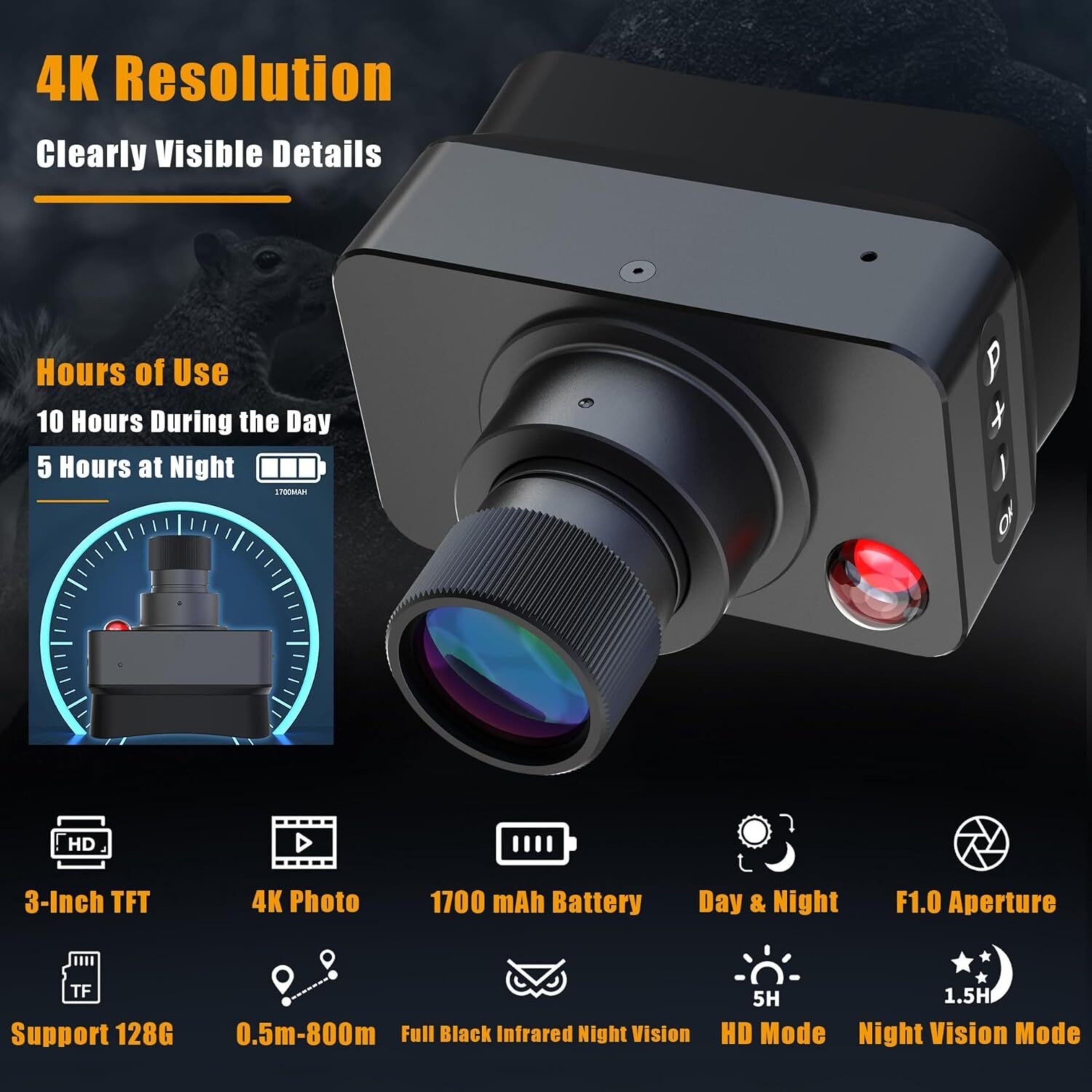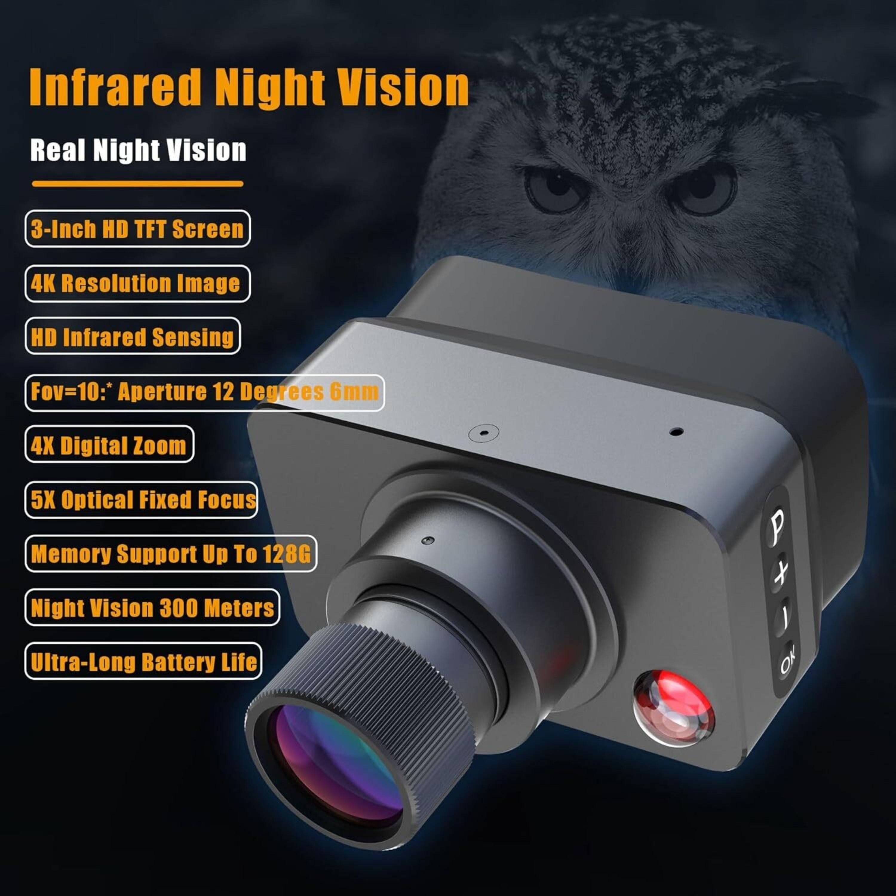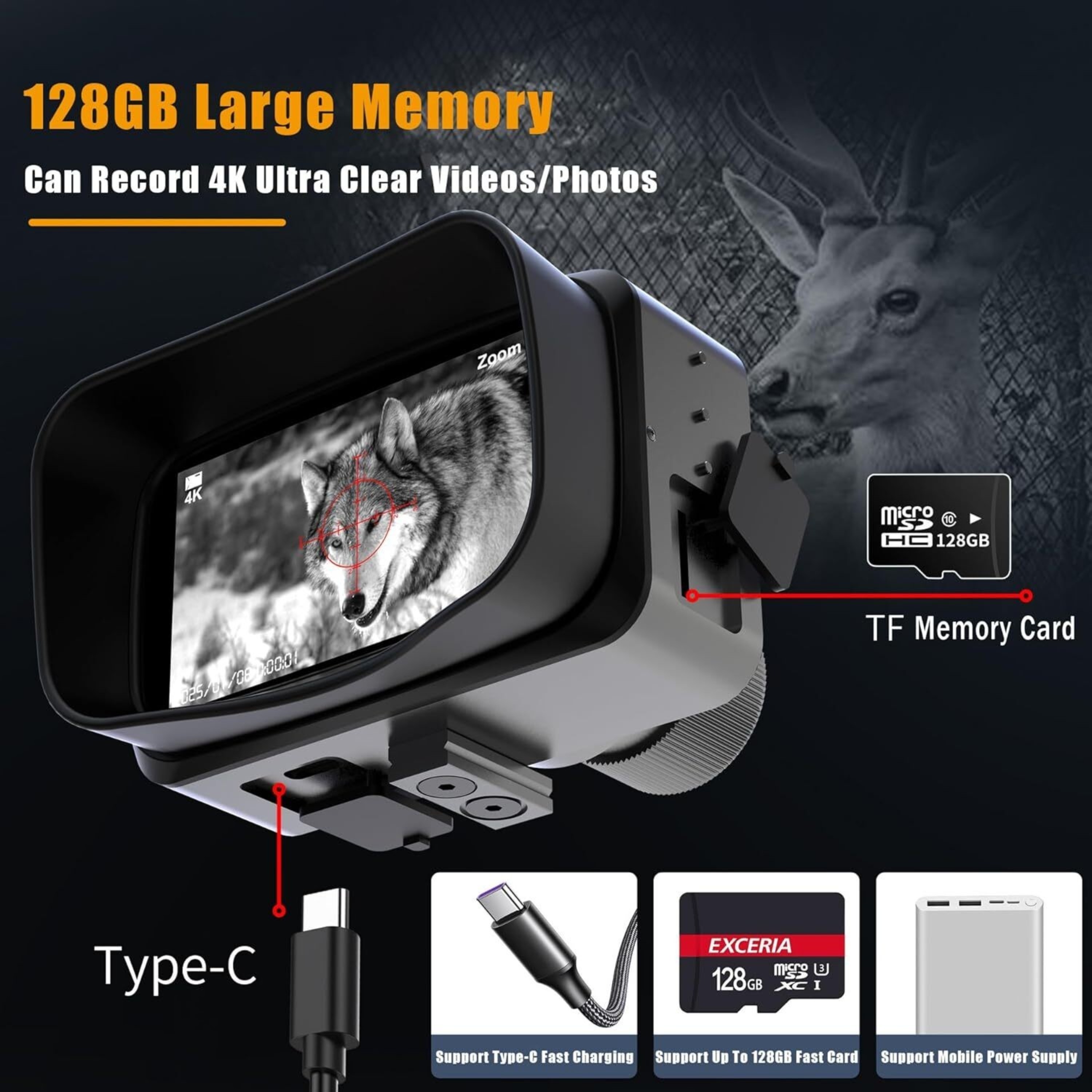 Night Vision Device 4K 3'' Display Screen 5X Digital Zoom 128GB
